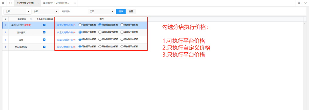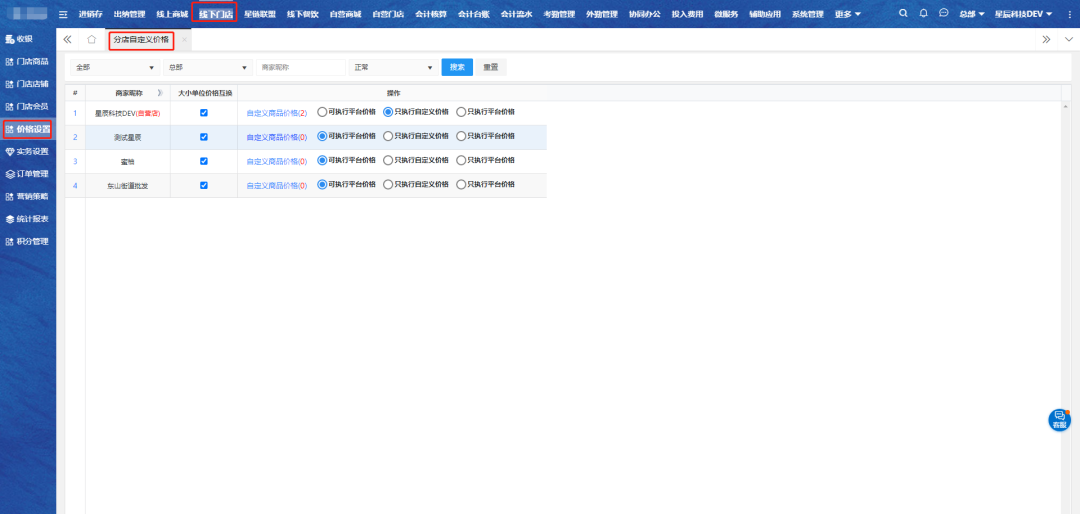 电脑端:【线下门店】-【价格设置】-【分店自定义价格】