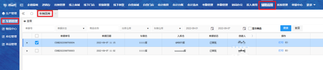 电脑端入口:【系统管理】-【辅助应用】-【车销管理】