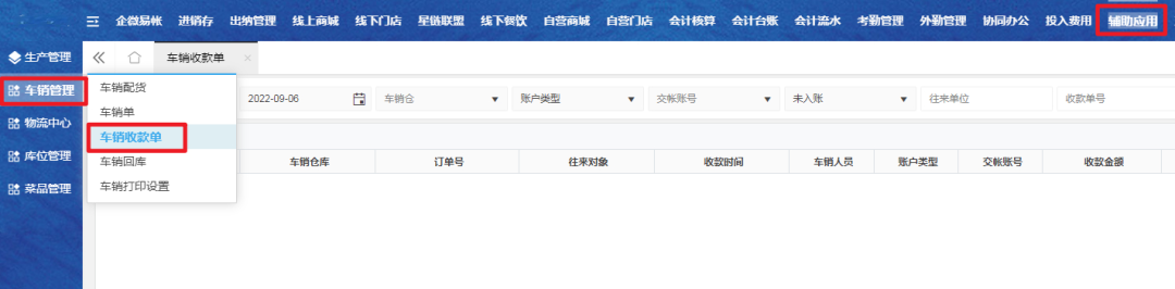 电脑端入口:【系统管理】-【辅助应用】-【车销管理】