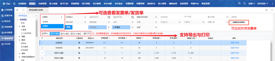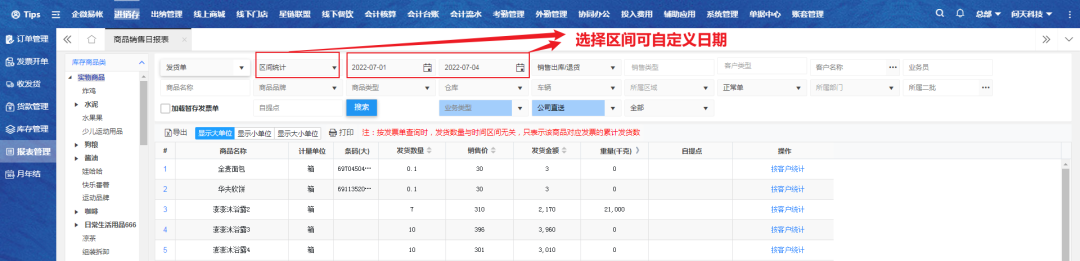 电脑端入口:【进销存】-【报表管理】-【商品销售日报表】